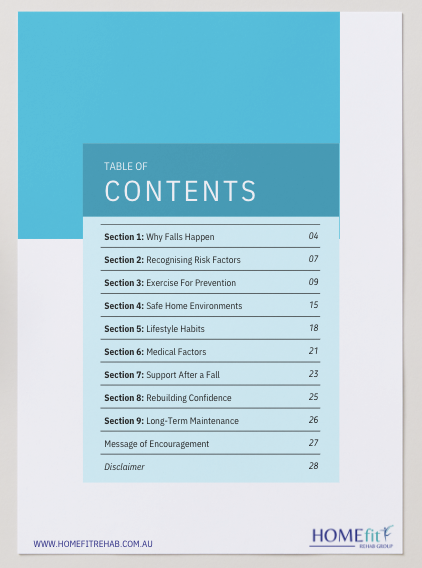 Give yourself, or a loved one, the knowledge, tools, and confidence needed to prevent falls and move safely at home. This professionally crafted digital guide from HOMEFIT Rehab Group is designed specifically for older adults who want to maintain strength, mobility, and independence without feeling overwhelmed or discouraged.